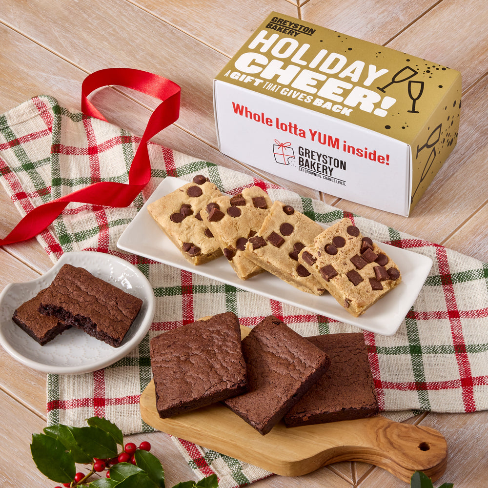 A delicious 8 piece gift box of Greyston Bakery Double Chocolate Chip Blondies