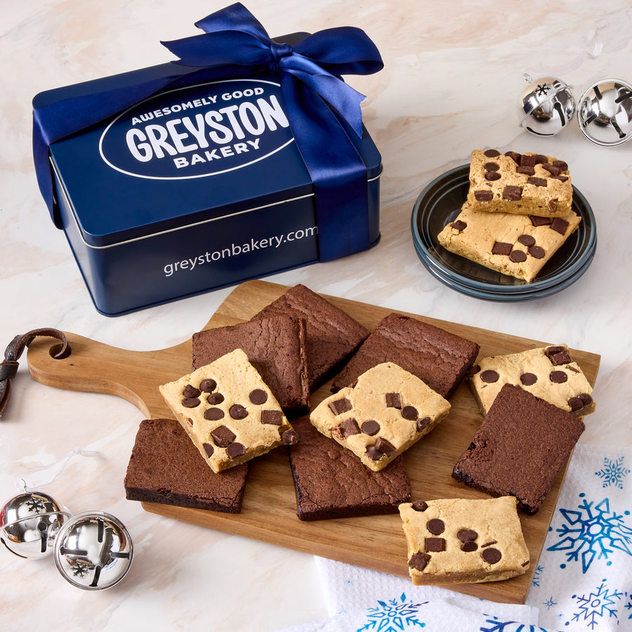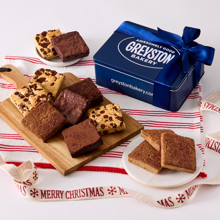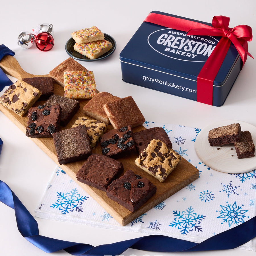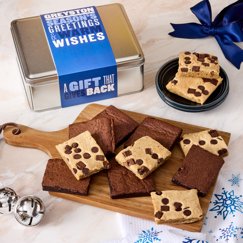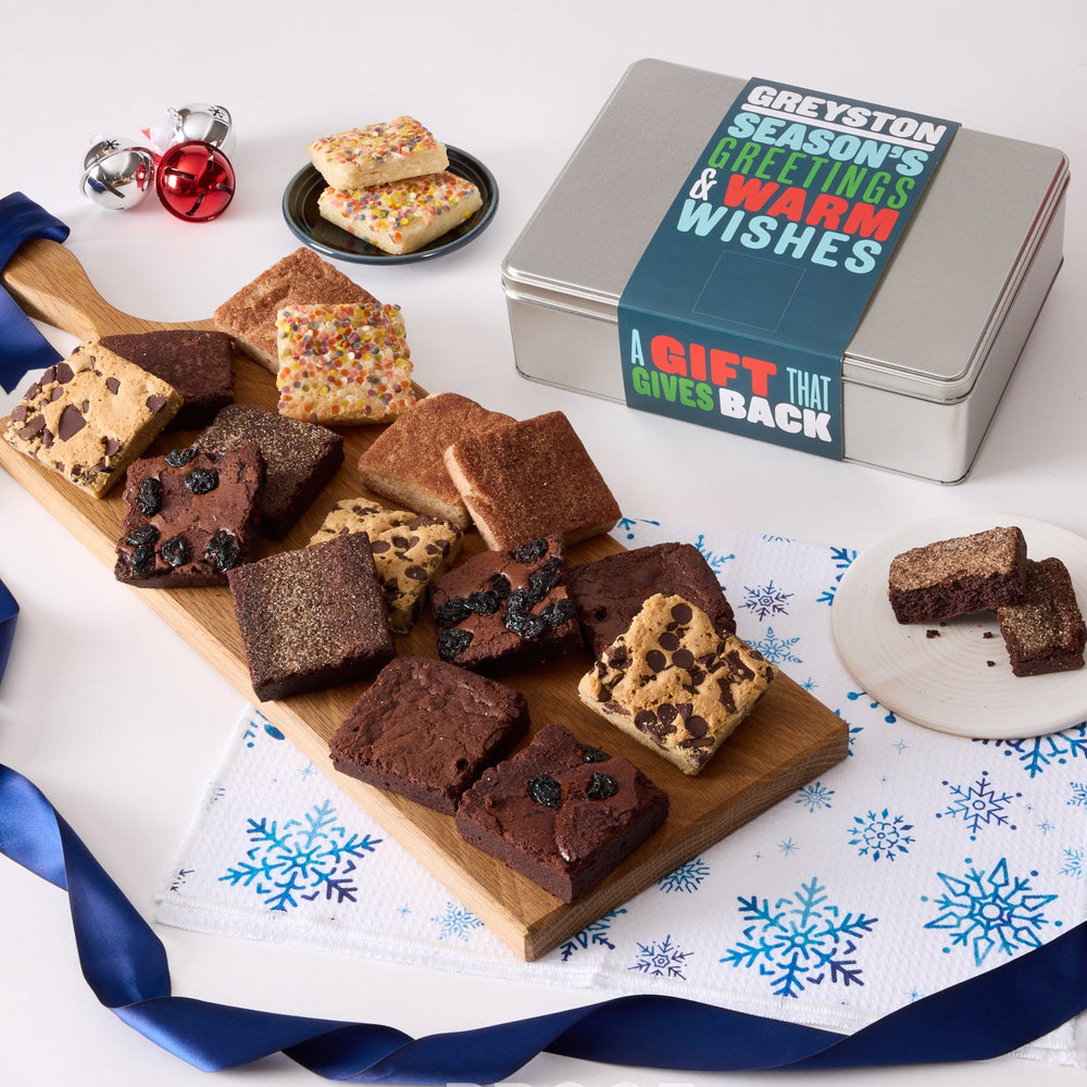 Elevate your gifting game with our assorted gift tins, filled with the finest brownie and blondie delights from Greyston Bakery. Each tin is packed with scrumptious flavors that are sure to delight your recipients' taste buds.