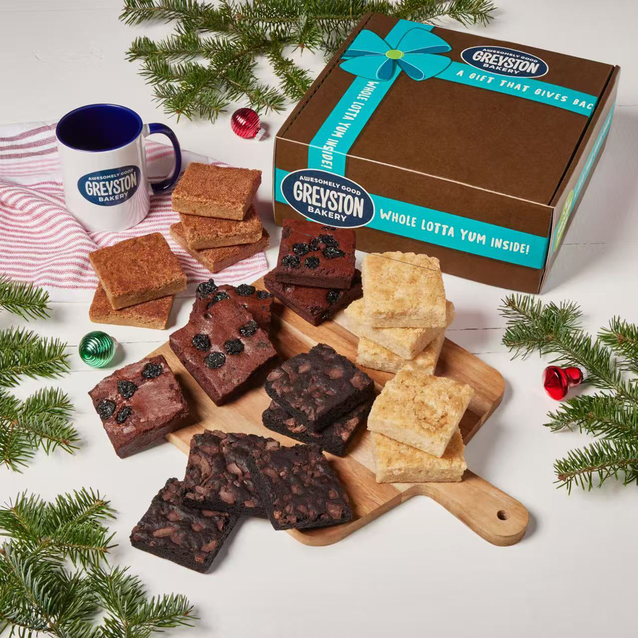 Get cozy this holiday season with our Cozy Holiday Mug & Treats Gift Pack – Seasonal Special. This festive set includes a new Greyston two-tone mug, perfect for enjoying your favorite coffee or tea alongside our 20 gourmet brownies in holiday-inspired flavors — Dark Chocolate Peppermint, Cherry Chocolate, Snickerdoodle Blondie, and Eggnog Blondie. Beautifully packaged in a holiday mailer box with an optional personalized message, it’s a thoughtful and delicious gift for family, friends, or clients. Baked with purpose and crafted for comfort, this set is the perfect way to share warmth and joy this holiday season.